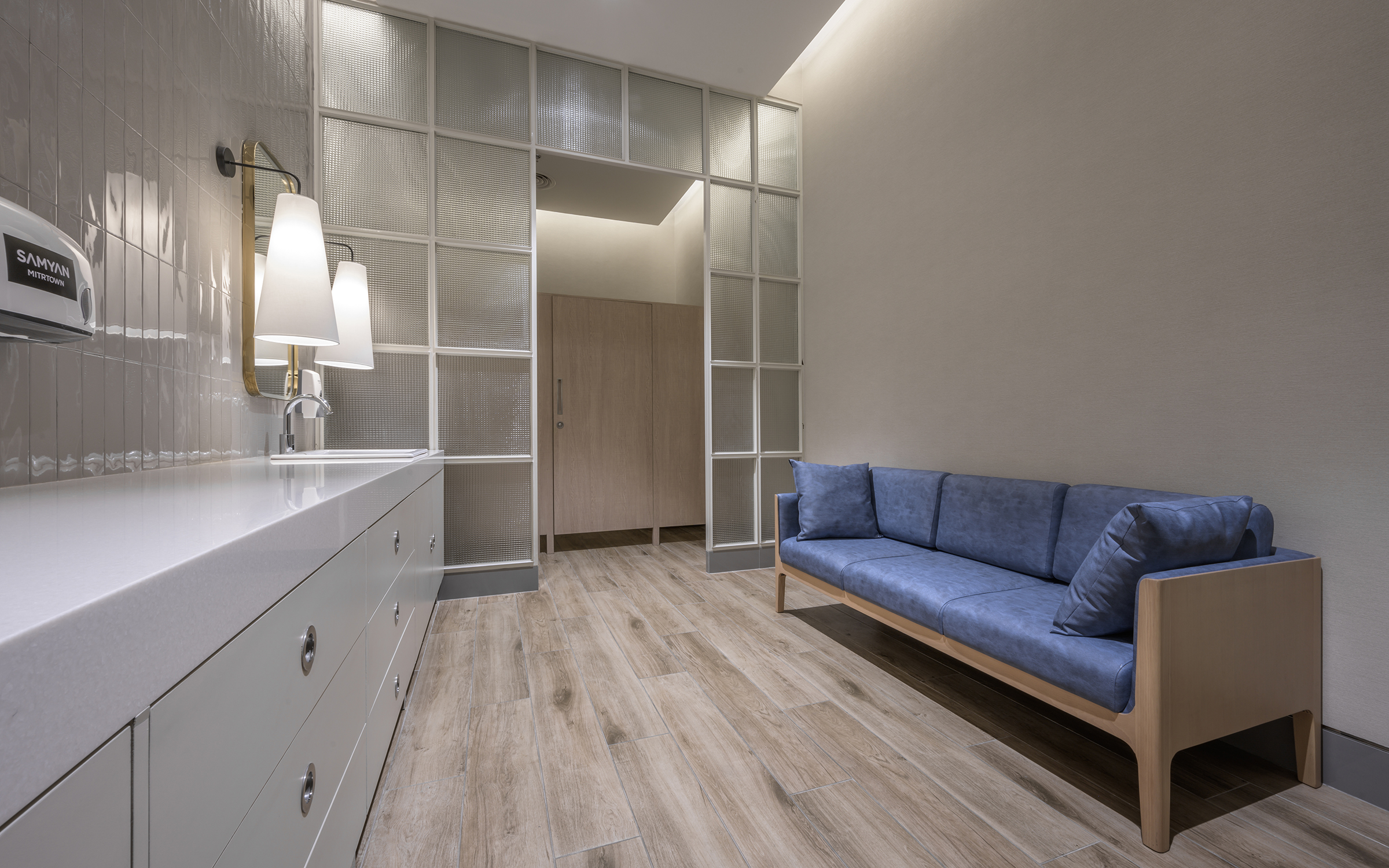 The Dressing Room is elegantly designed with mirrors adorning every corner. The room is appointed with tables and well-lit, making it particularly suitable for makeup touch-ups. Additionally, there is a changing room for outfit adjustments, which customers can reserve in advance for their convenience.